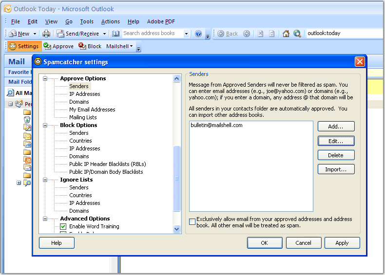 You can specify which messages should always be approved. You can also choose to only accept email from approved senders.